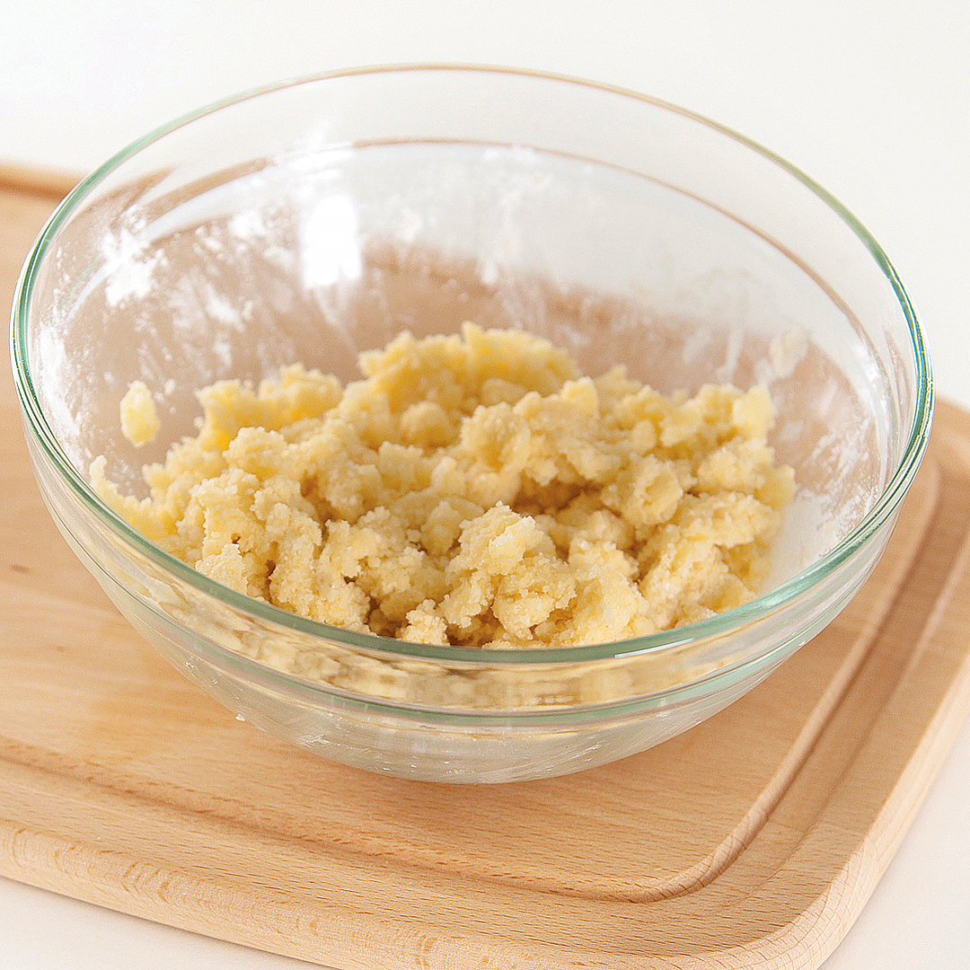 - Bļodā liek mīkstu sviestu (istabas temperatūrā), miltus un cukuru, pieber šķipsnu sāls