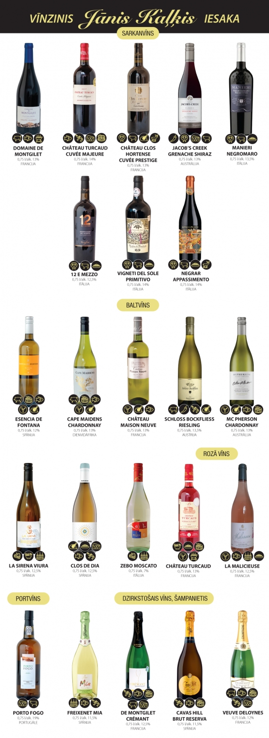„ELVI” sadarbībā ar vienu no Latvijas ievērojamākajiem vīnziņiem Jāni Kaļķi ir izveidojis īpašu vīnu izlasi mūsu klientiem, ko veikalos rotā uzlika „Vīnzinis iesaka”. Tie ir izcili vīni ar labāko cenas un kvalitātes līdzsvaru – nekļūdīga izvēle Taviem īpašajiem mirkļiem!